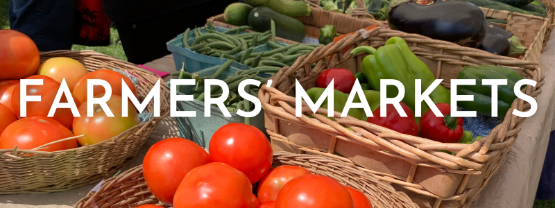 There are ten farmers’ markets that take place throughout the summer with a few of them lasting year-round or long into the fall. At the markets you will find fresh fruits and vegetables, pasture raised meat, herbal tinctures and dried herbs, homemade pies, fresh baked bread and pastries, and many other locally produced items. Learn more about the specific farmers’ markets in the area here.